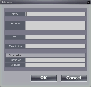 Boite de dialogue d'enregistrement de nouvelles informations d'emplacement. Ajoutez de nouvelles informations d'emplacement.