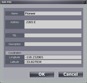 Boite de dialogue de modification des informations d'emplacement. Modifiez les données de l'emplacement sélectionné dans la liste.
