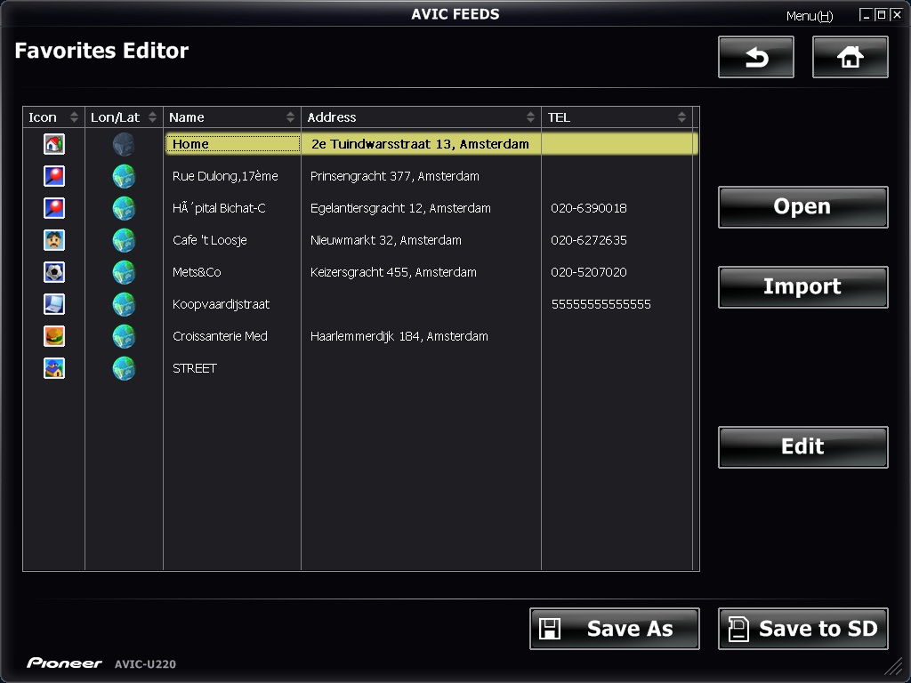 Modifier les informations d'emplacement, affecter une icône et transférer sur une carte SD.