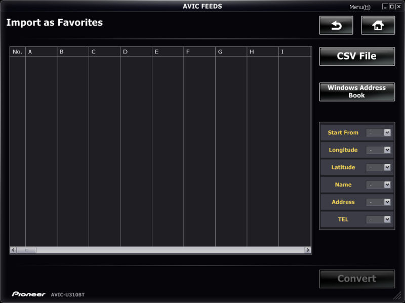 Vous pouvez convertir les données de PDI du format CSV à un format qui est supporté par le système de navigation pour automobile. Vous pouvez transférer les données au système de navigation pour automobile via un périphérique mémoire USB ou une Carte SD.